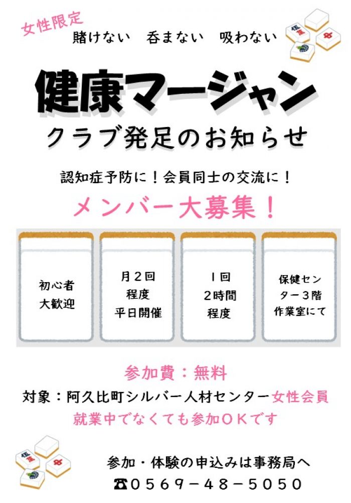 女性限定 健康マージャンクラブ 立ち上げ予定です!