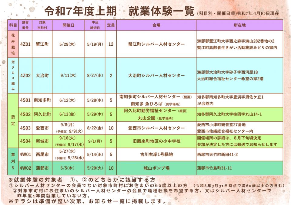 令和7年度 高齢者活躍人材確保育成事業 就業体験のご案内