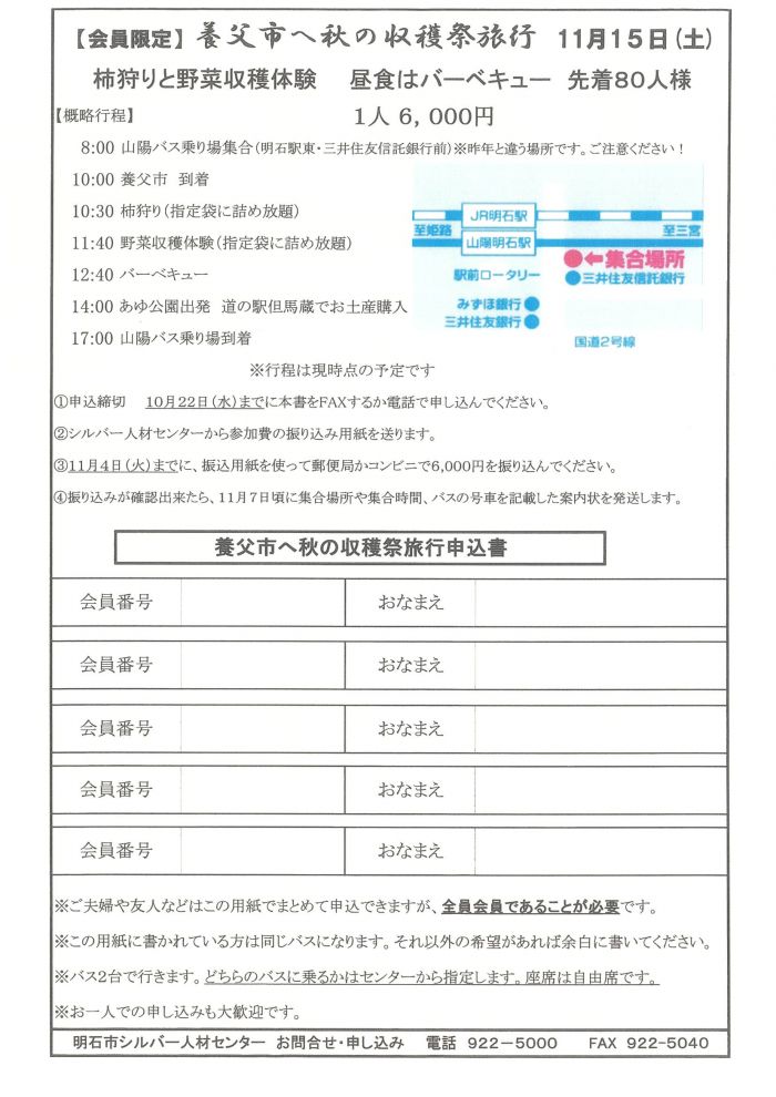 申込書は事務局通信10月号に同封して郵送しています。
