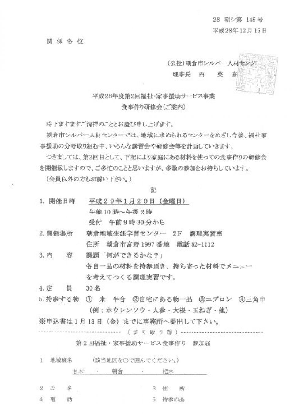 会場は朝倉市シルバー人材センター甘木本所です。