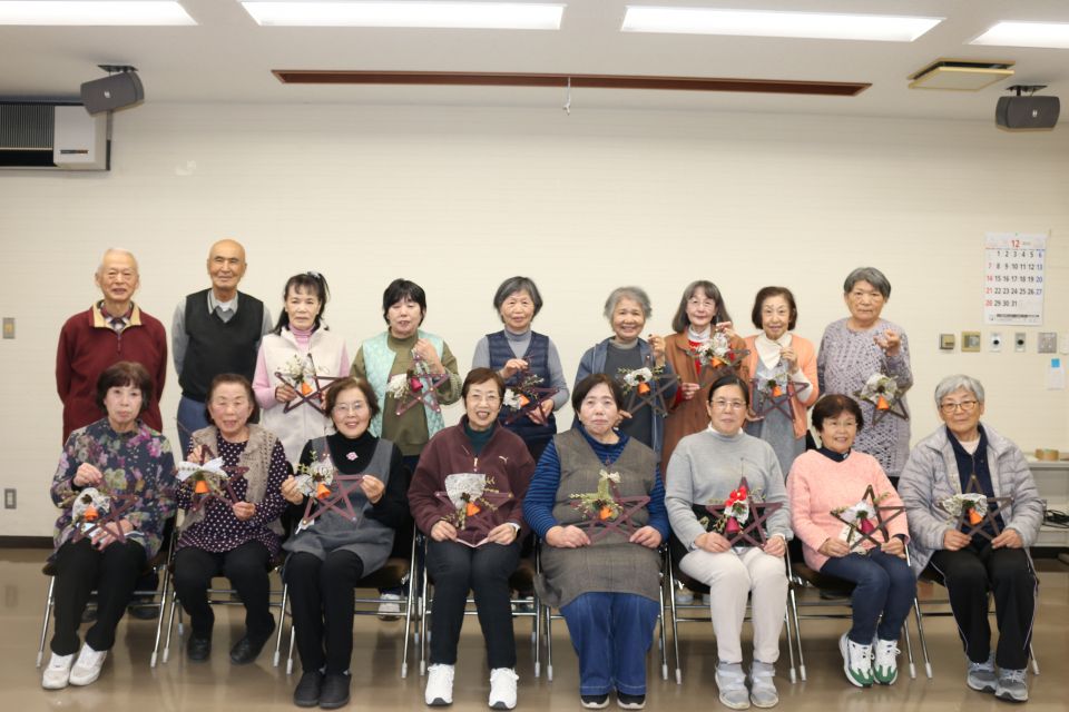 たくさんの会員が参加してオリジナルのリースを完成させました。 みんな、いい笑顔でしょ°˖✧