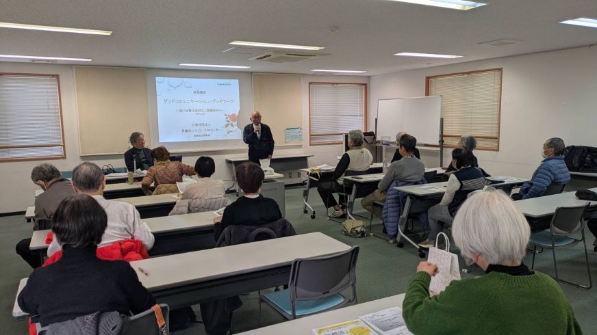 受講後のアンケートでは、「年を経るに従って、自己的欲求が強くなりがちですが、これから先いろんな場面で利他的な言動ができるようにすごしていきたいです。とても良い研修ありがとうございました。」「接遇のあり方、心の持ち方が勉強になりました。豊かな心で仕事に励みたいと思えるようになった。」「自己分析ができ、これからの仕事、生活にいかしていきたいと思った。とても良い勉強になり、有意義な一日となりました。」等の感想をいただきました。同講座は、認知症サポーター養成講座とともにセンターのベーシック講座(必須講座)です。今年度最終の第5回は2月6日(金)に実施予定ですので、未受講の会員はぜひ受講してください。