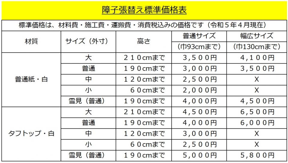 障子張替え追加費用