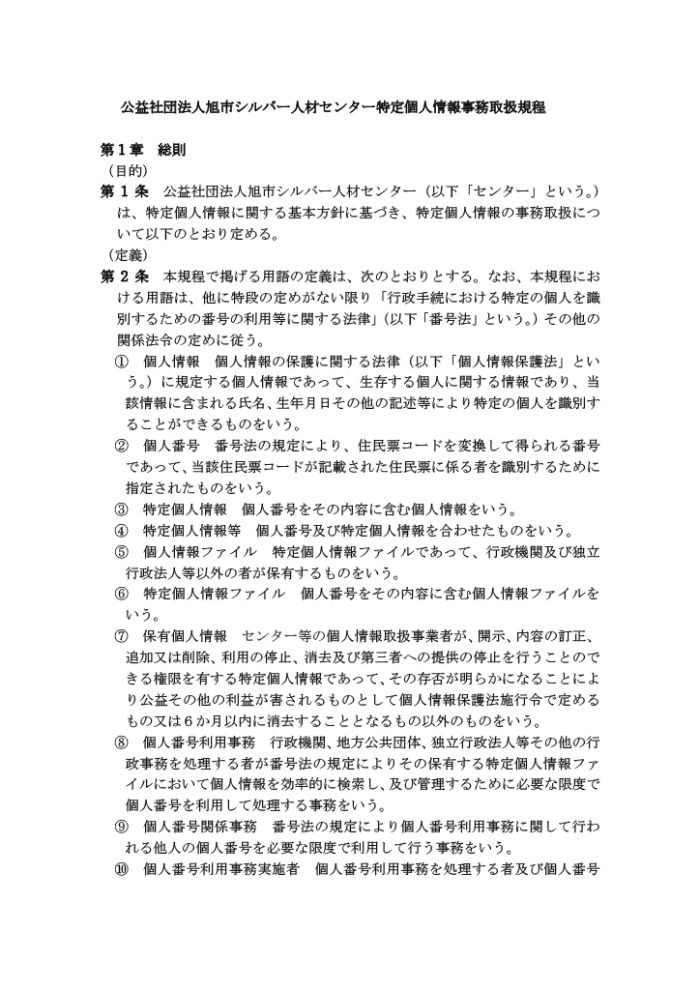 公益社団法人旭市シルバー人材センター特定個人情報事務取扱規程