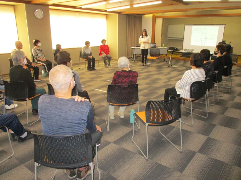 腰痛予防のための健康な体づくりと食事・運動・姿勢のコツ等を学びました。