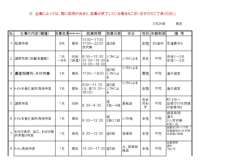 詳細は安曇野シルバー人材センター(TEL 0263-72-5800)にお問い合わせ願います。