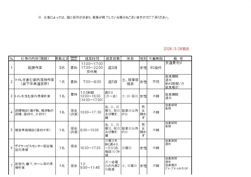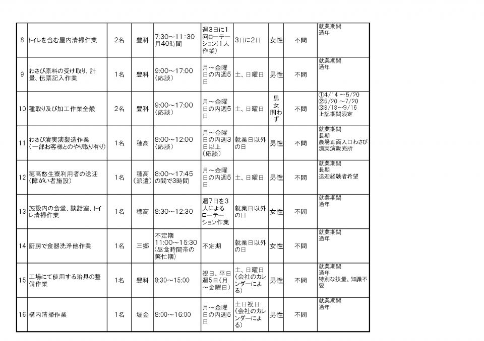 ●既に会員が決まった場合、新たな求人がある場合もありますので、詳細は安曇野シルバー人材センター(TEL 0263-72-5800)にお問い合わせ願います。