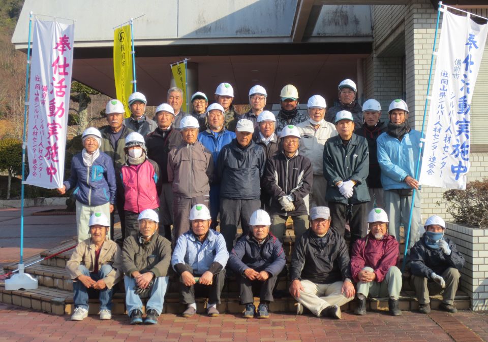 ボランティア活動 ◆ボランティア活動 ボランティア清掃活動を行いました。 屋外作業が一段落する2月頃に、毎年ボランティア作業を行っています。今年は、この冬一番の寒気で前日の雪がまだ残る中、会員・職員29名で総合運動公園の落葉かきや剪定作業を行いました。 作業風景 体育館周辺の落葉かきや剪定作業を行いました。 各種イベントへの参加 シルバー人材センターの活動の普及・啓発のため、イベント等に参加しています。 「市民ふれあい福祉まつり」に参加させていただきました! 展示ブースでは、昔遊びとして竹トンボ作りのコーナーを設け、会員と子供たちが触れ合いました。