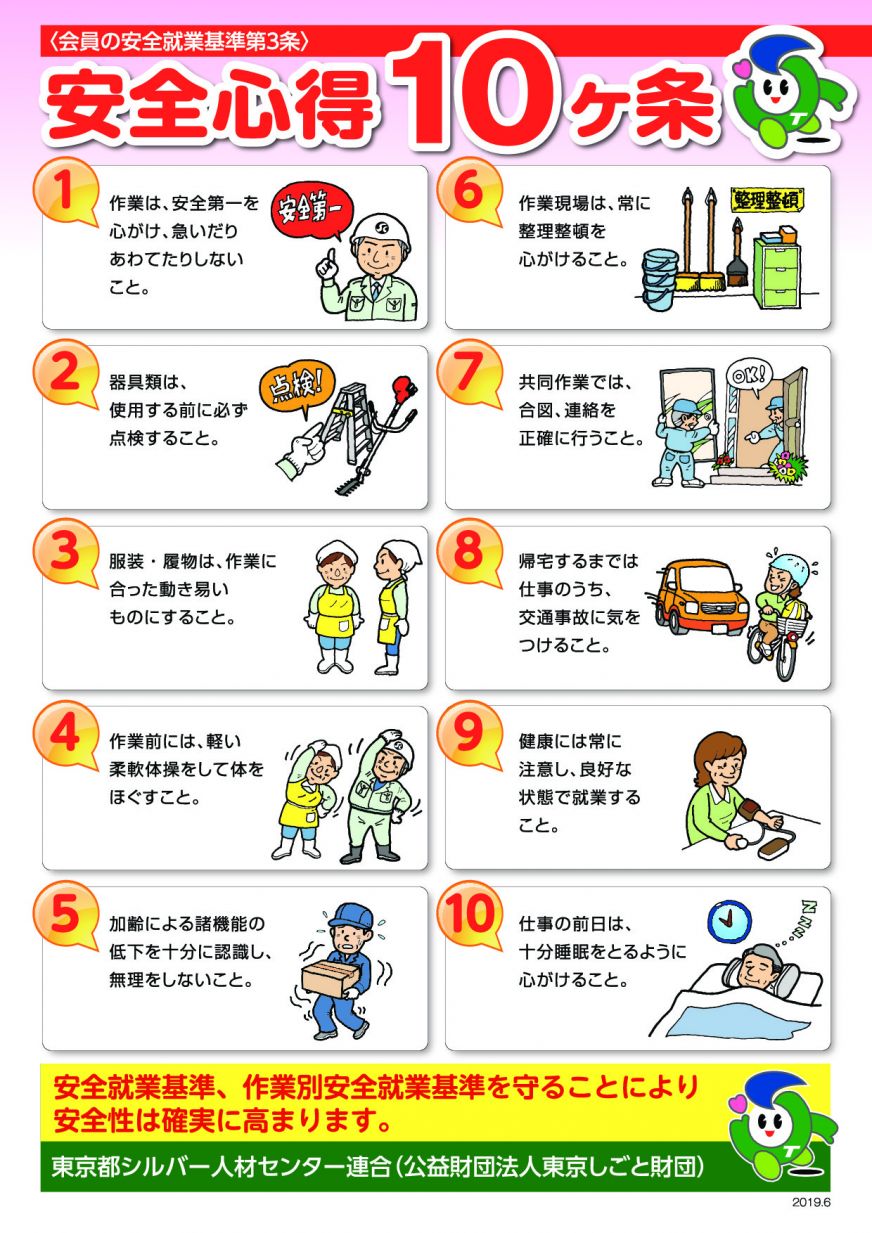 東京都のすべてのシルバー人材センターは、「安全はすべてに優先する」との基本理念のもと、組織一丸となって、事故ゼロを目指す。