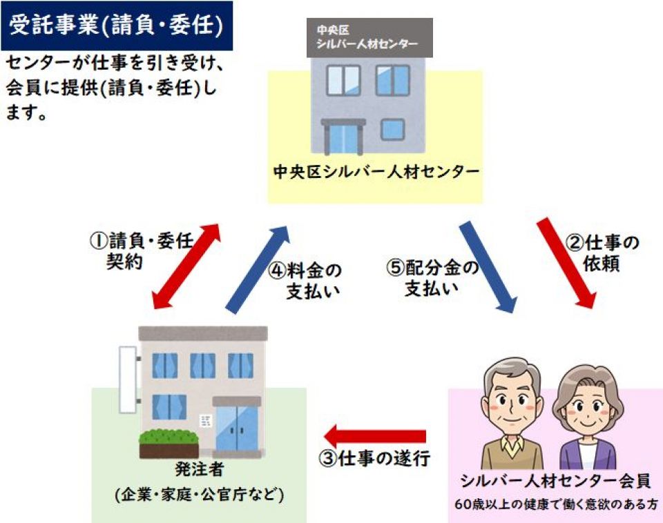 ◆ 中央区シルバー人材センターは「請負・委任」と「シルバー派遣」という2つの就業形態です。