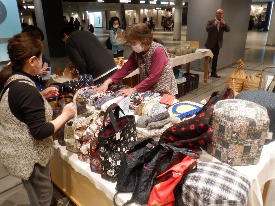 手芸品を作った会員さんが代表して2人来て、準備や販売をしました。