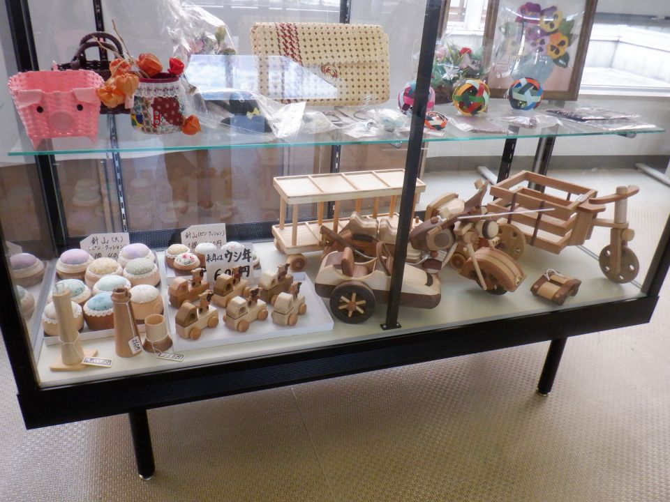 木工製品の販売をしています!センター正面玄関すぐのショーケースに実物がありますので是非ご覧ください!