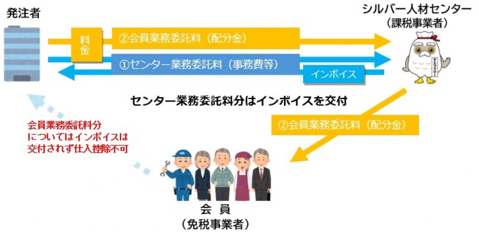 シルバー人材センターから発行する請求書は、「センター業務委託料」と「会員業務委託料(会員の報酬)」の2つの項目で構成されています。