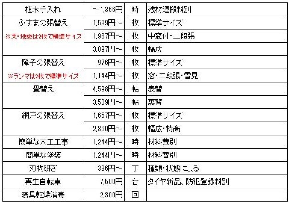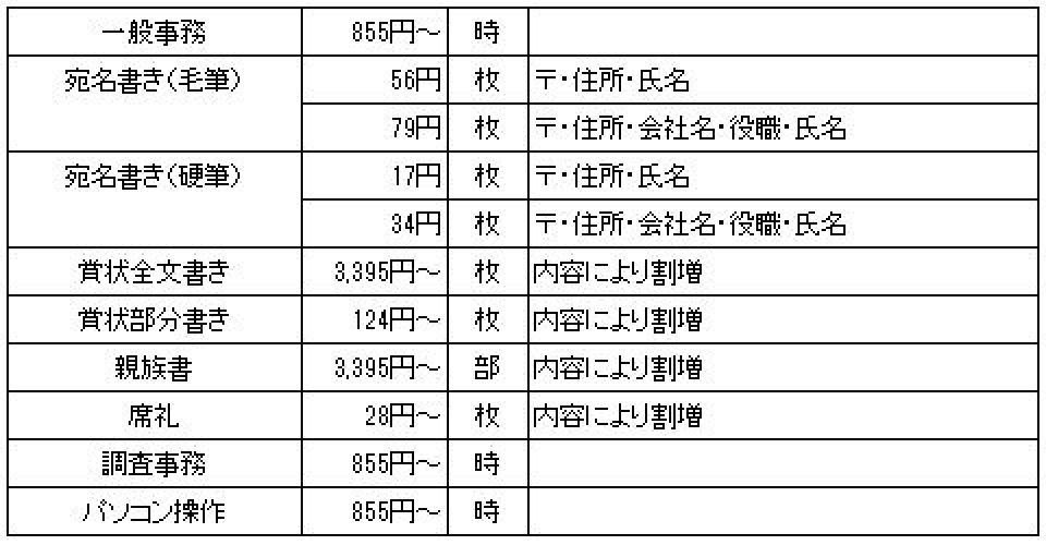 ◆ 主な仕事と料金