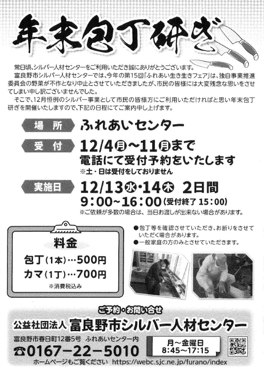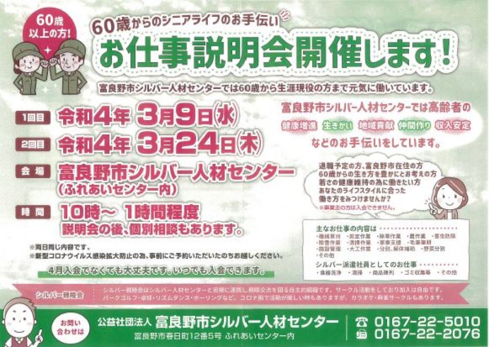 この内容に関するお問い合わせは公益社団法人富良野市シルバー人材センター総務課までお願い致します。