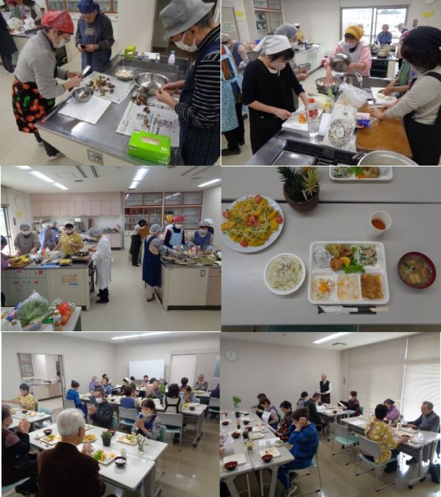 芋ごはん、べったら漬け、のっぺい汁、豚バラ大根、カブの酢物、白和え、かぼちゃのタタキ、菊芋の磯部揚げ、野菜のかき揚げ、かぼちゃコロッケ、ポテトサラダ、大福を美味しくいただきました。