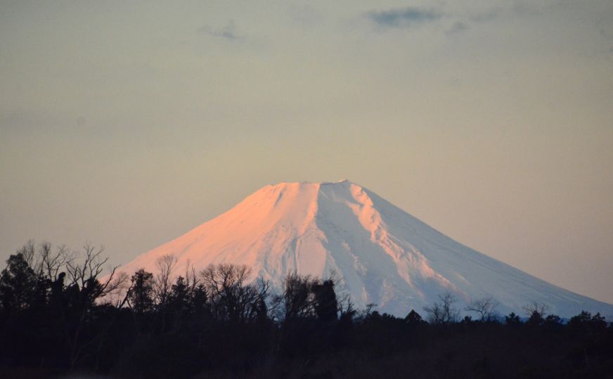 元旦の狭山湖からの朝焼け富士山です。