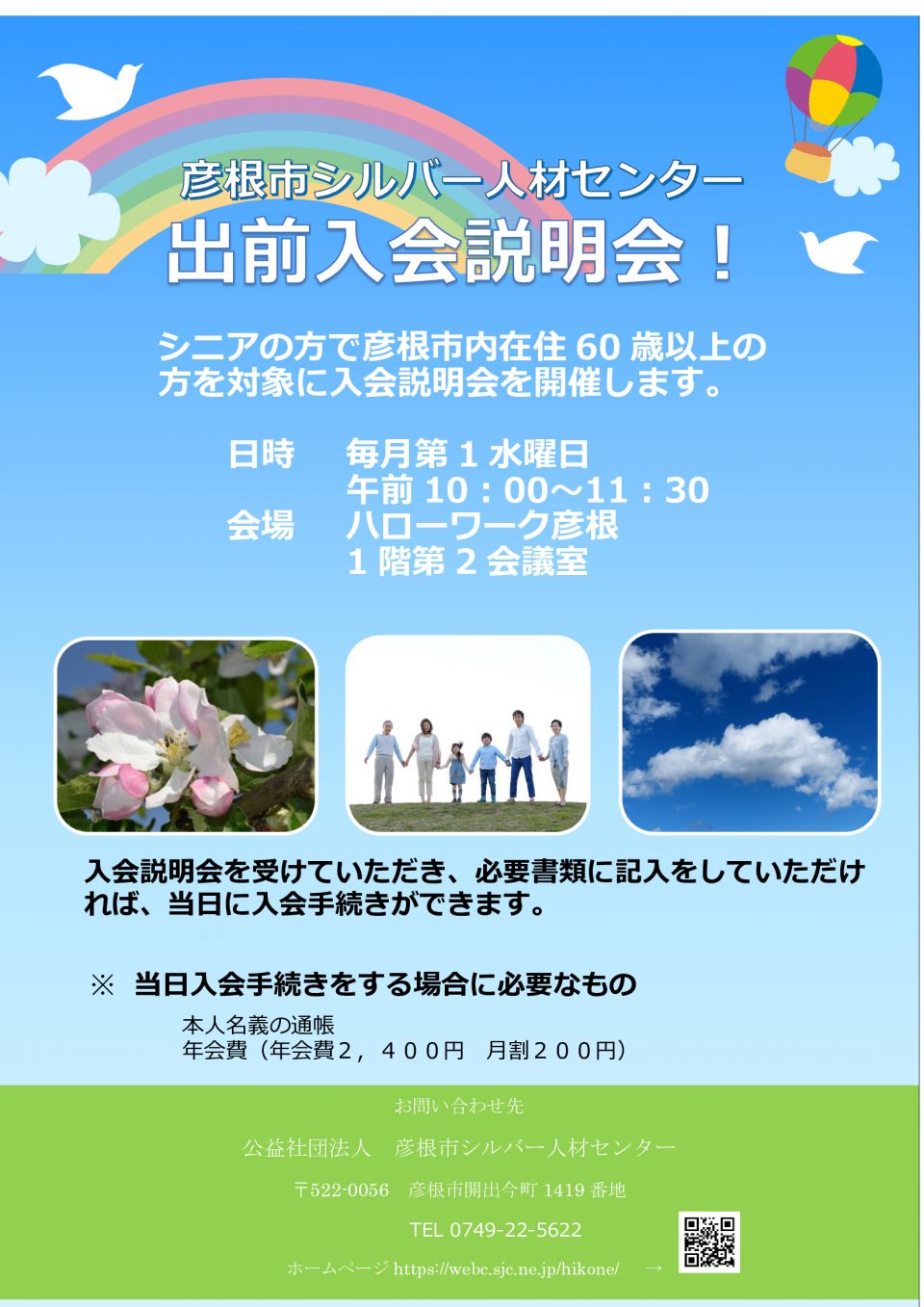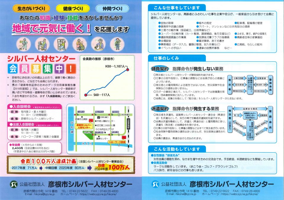 入会説明会は、毎月第2・第4木曜日の午後1時30分から彦根市シルバー人材センターで行っています。