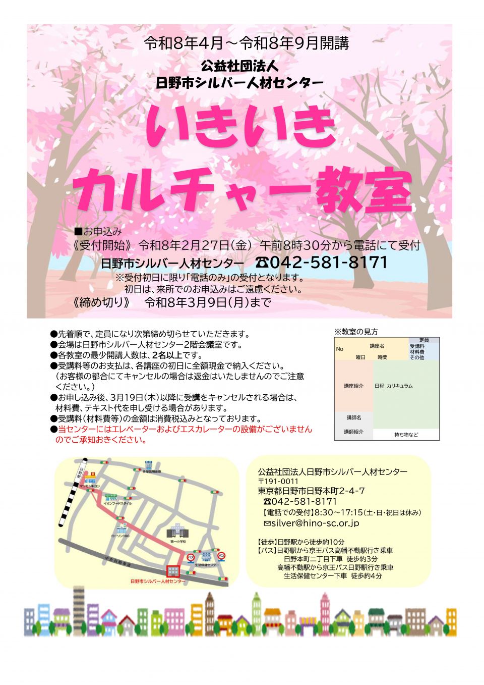 - 受付期間中に日野市シルバー人材センターに電話または直接訪問にてお申し込みください(初日は電話のみ)。