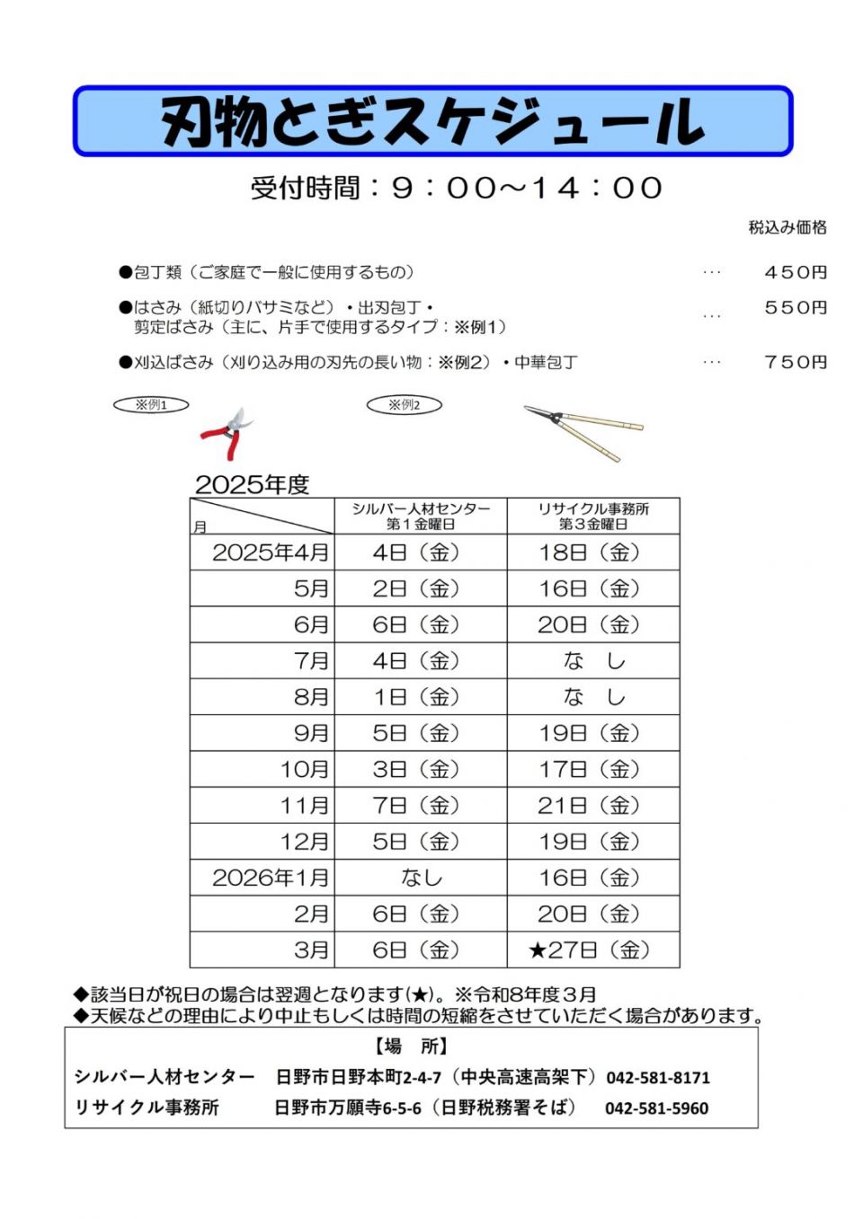 詳しくは、お問い合わせやお持ち込みの際にご相談ください。