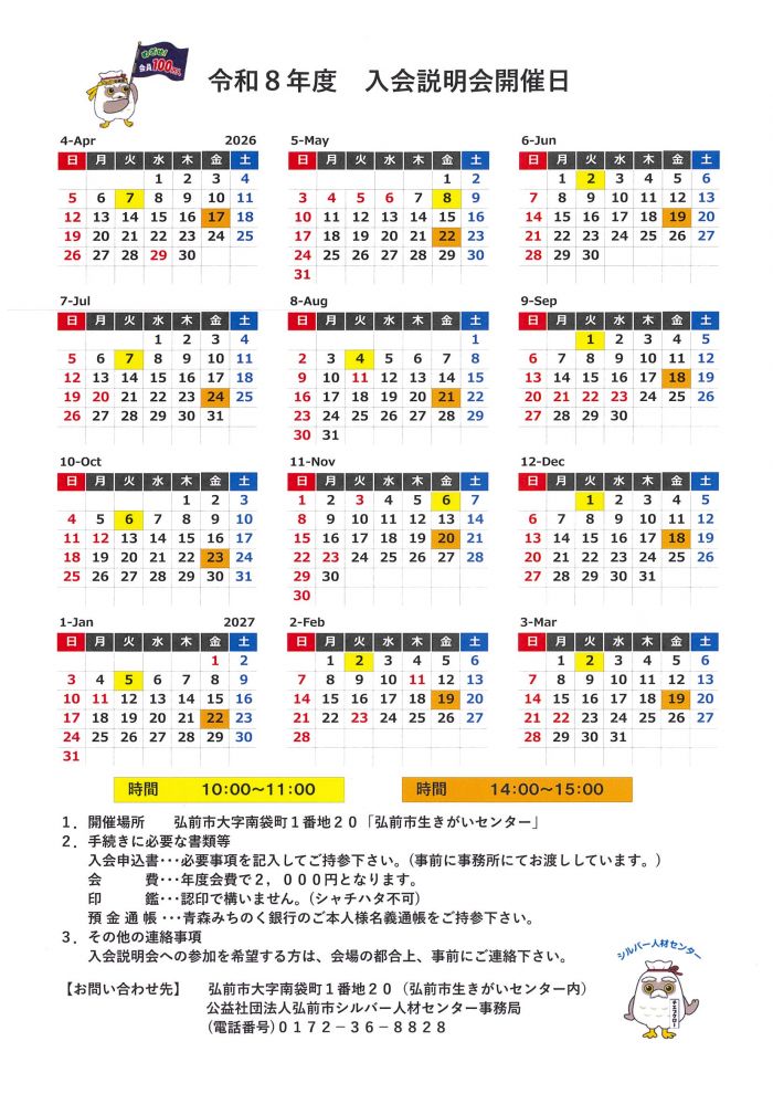 入会説明会の日程
