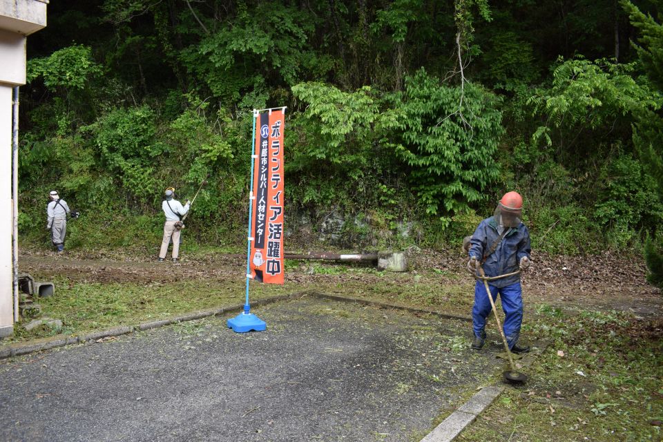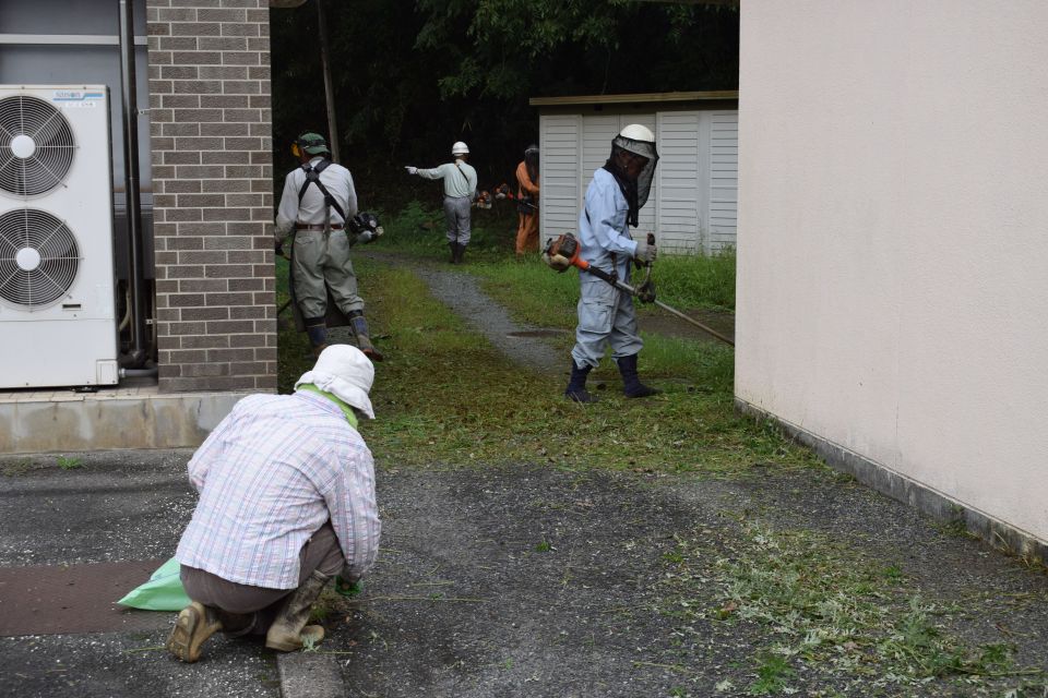 社会福祉協議会芳井支所敷地内で、草刈り作業を行いました。