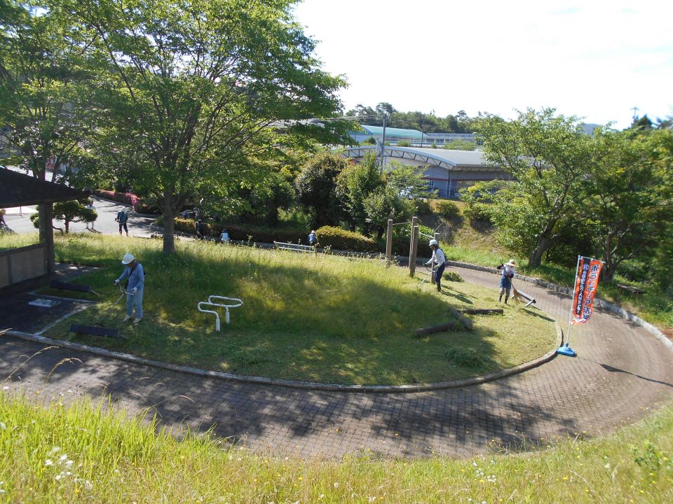 美星国保診療所の方と美星地区の会員35名で草刈り、草取り等のボランティア活動を行いました。