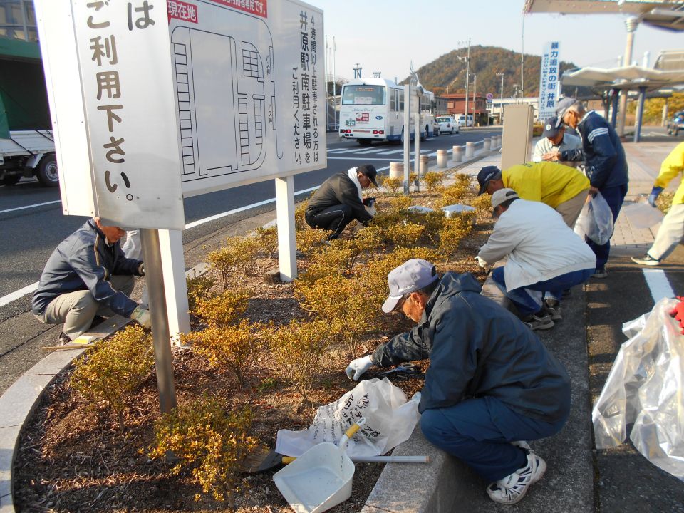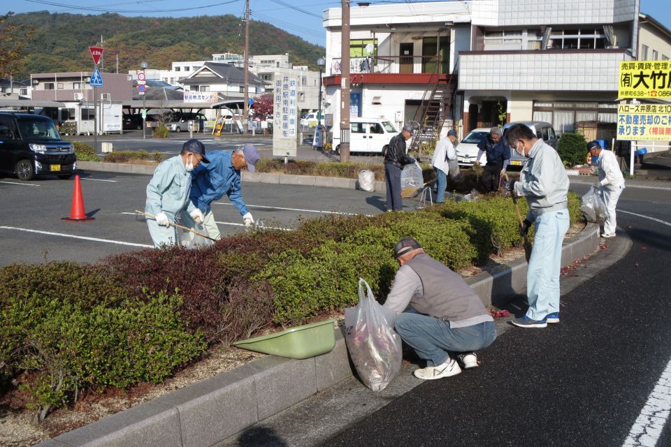 井原地区の会員18名で井原市社会福祉協議会敷地内の剪定、草取り等を行いました。