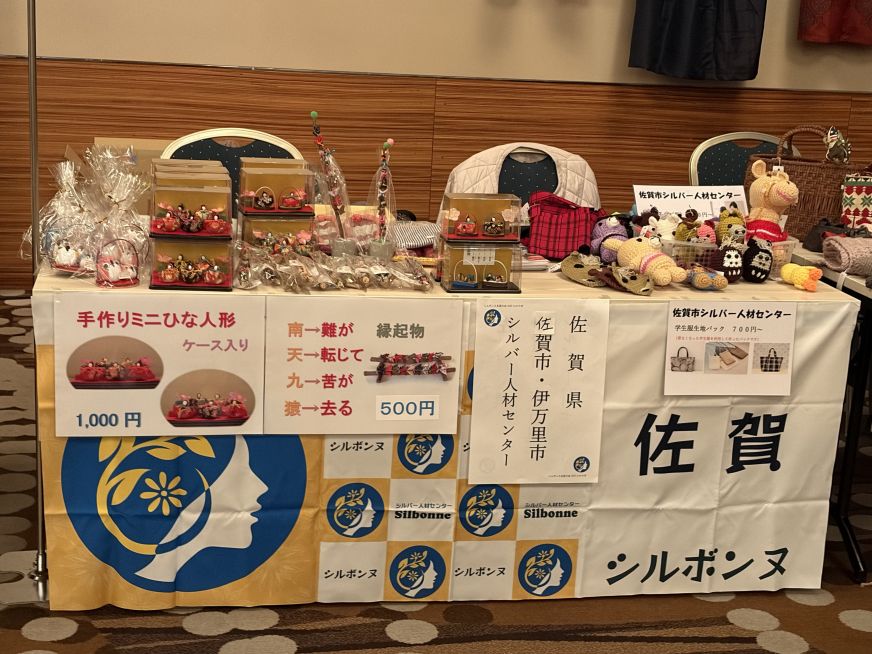 令和7年11月20日(木)に、宮城県で開催された「シルボンヌ全国大会2025INみやぎ」に参加して、コスモスの会が作成したおひなさまや南天九猿などを販売して大盛況でした!