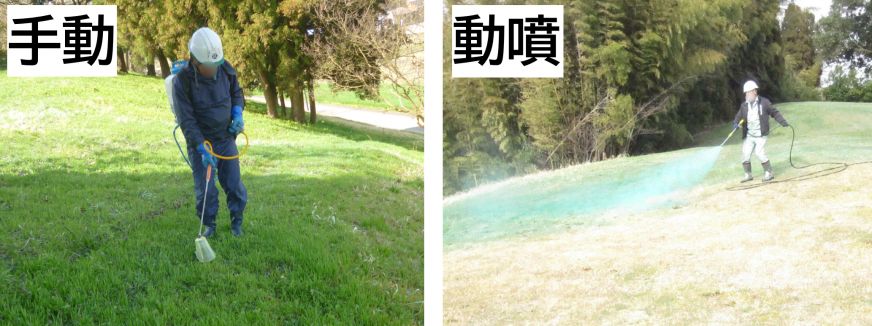 草刈機を使用した草刈り作業や、散布機を使用した草の除草剤散布作業を行います。