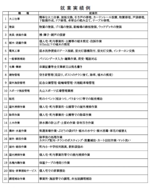 よくあるご質問 入会をお考えの方からのよくある問合せを掲載しています Q入会するためには、必要な資格や条件はありますか? A町内在住の60歳以上の方で、健康で働く意欲のある方なら、どなたでも会員になれます。 Qどんなお仕事がありますか? A町内のご家庭をはじめ、企業・公共施設など多岐にわたって活躍の場が広がっています。下記のとおり一例を掲載しておりますが、詳しくは、入会説明会へご参加ください。 就業実績例