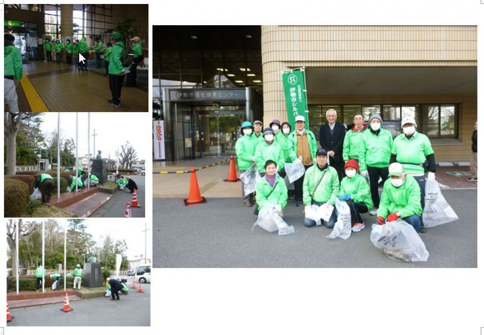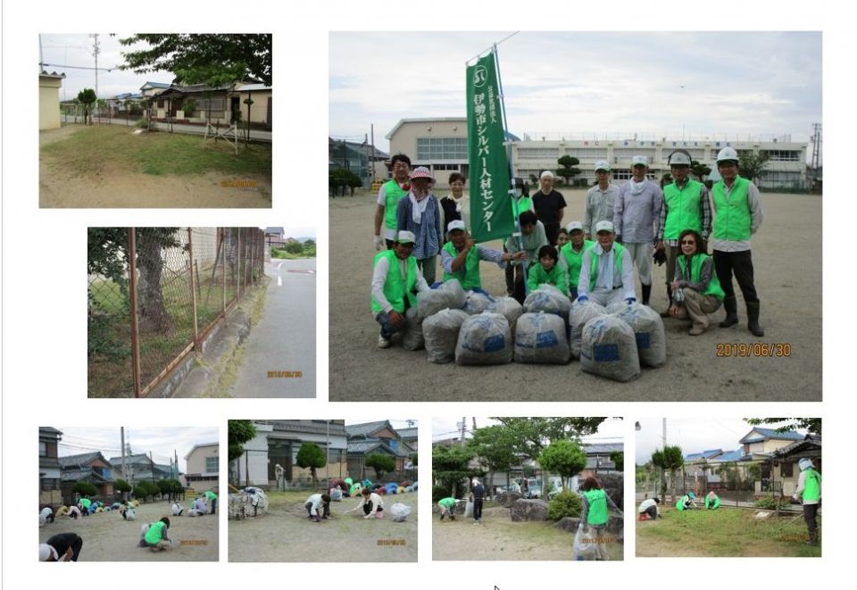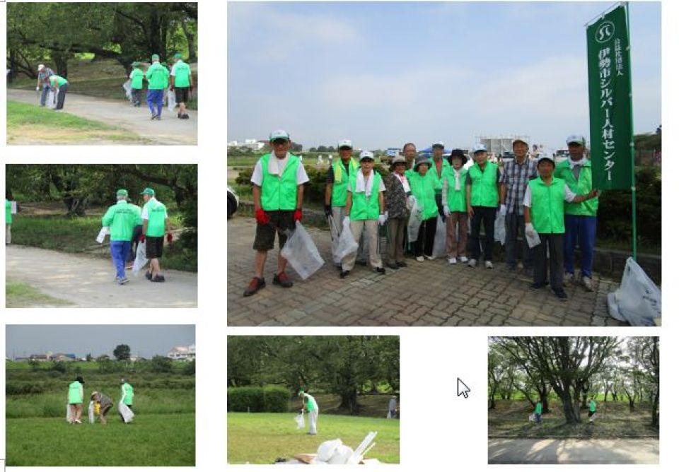社会奉仕活動(ボランティア) 各地区の地区連絡会報告 地区連絡会の活動情報を随時更新していきます シルバーの日 早朝清掃 当シルバー人材センターでは、「三重県シルバーの日」にちなみ、社会奉仕活動として地域の清掃・美化運動を行い、シルバー人材センターの普及啓発促進を行っています。 今年は、10月1日(土)に4年ぶりに開催された「伊勢まつり」会場周辺の早朝清掃を行いました。 早朝清掃は、天候にも恵まれ79名の参加をいただき、きれいなまちづくりとまつりの盛り上げに一役買うことができました。 小俣4班 地区連絡会 大仏山公園周辺清掃活動 令和元年5月19日(日) 小俣4地区 地区連絡会 たくさんの会員さんにご参加いただきました 二見1班 地区連絡会 旧今一色小学校除草作業 令和元年6月30日(日) 二見1地区 地区連絡会 たくさんの会員さんにご参加いただきました 有緝地区 地区連絡会 勢田川七夕清掃活動 令和元年7月7日(日) 有緝地区 地区連絡会 ご参加いただきました皆様ありがとうございました 浜郷地区、宮本・沼木地区 地区連絡会 勢田川七夕清掃活動 令和元年7月7日(日) 浜郷地区、宮本・沼木地区 地区連絡会 たくさんの会員さんにご参加いただきました 有緝地区 地区連絡会 勢田川七夕清掃活動 令和元年7月7日(日) 有緝地区 地区連絡会 たくさんの会員さんにご参加いただきました 北浜地区 地区連絡会 有滝大浜海岸 海の日ボランティア清掃 令和元年7月15日(月・祝) 北浜地区 地区連絡会 ご参加いただきました皆様ありがとうございました 中島地区 地区連絡会 宮川堤公園清掃 令和元年8月18日(日) 中島地区 地区連絡会 たくさんの会員さんにご参加いただきました 宮本・沼木地区 地区連絡会 防犯講習会 令和元年8月19日(月) 宮本・沼木地区 地区連絡会 たくさんの会員さんにご参加いただきました 大湊地区 地区連絡会 大湊秋祭り 令和元年9月15日(日) 大湊地区 地区連絡会 ご参加いただきました皆様ありがとうございました 小俣2・3地区 地区連絡会 【食の安心と安全】 令和元年9月25日(水) 小俣2・3地区 地区連絡会 たくさんの会員さんにご参加いただきました 明倫地区 地区連絡会 宇治山田駅~伊勢市駅清掃 令和元年10月11日(金) 明倫地区 地区連絡会 たくさんの会員さんにご参加いただきました 小俣5地区 地区連絡会 明野駅前除草・清掃活動 令和元年10月15日(火) 小俣5地区 地区連絡会 たくさんの会員さんにご参加いただきました 小俣1地区 地区連絡会 まちをきれいにする活動ゴミ拾い作業 令和元年11月10日(日) 小俣1地区 地区連絡会 ご参加いただきました皆様ありがとうございました 五十鈴地区 地区連絡会 古市~宇治館町清掃活動 令和元年12月15日(日) 五十鈴地区 地区連絡会 ご参加いただきました皆様ありがとうございました 四郷・二見1地区 合同地区連絡会 防災講習会 令和2年1月23日(木) 四郷・二見1地区 合同地区連絡会 ご参加いただきました皆様ありがとうございました 厚生・早修地区 地区連絡会 労働福祉会館周辺清掃 令和2年2月17日(月) 厚生・早修地区 地区連絡会 ご参加いただきました皆様ありがとうございました H30年度 活動状況