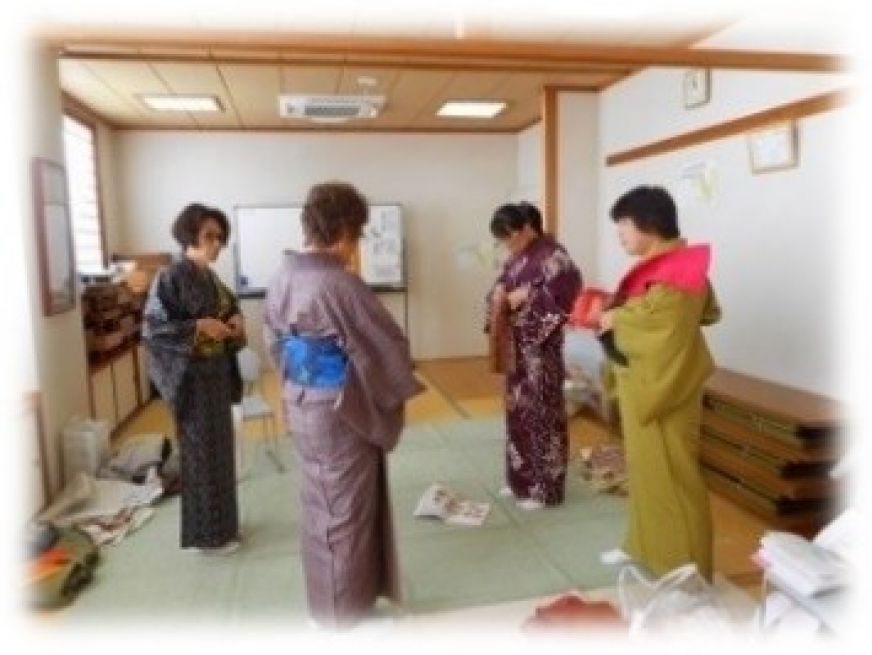 初級:着物を着ることが出来ない初歩の方から指導します。半年間で上手く着付けができるようになります。