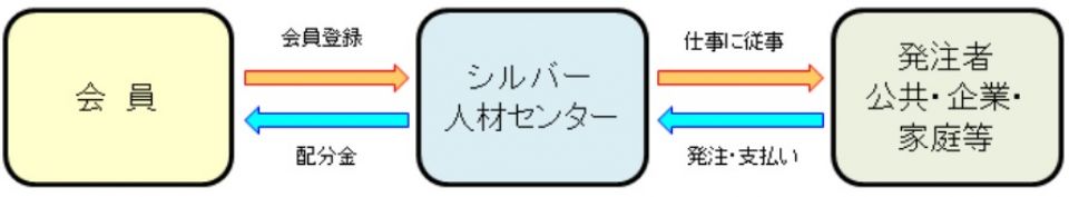 ・シルバー人材センターは、発注者と労働者派遣契約、会員と雇用契約を締結します。