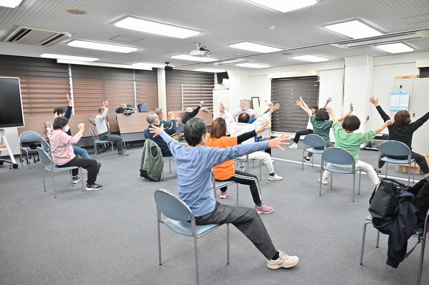 椅子に座っての全身ストレッチや脳トレ体操、