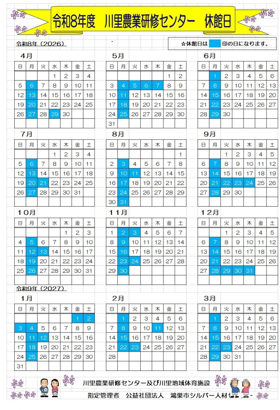 令和8年度 川里農業研修センター休館日