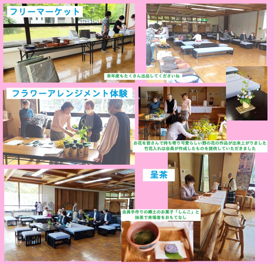 フラワーアレンジメント体験・・・野の花を可愛らしくアレンジします 出来上がった作品は器ごとお持ち帰りできます