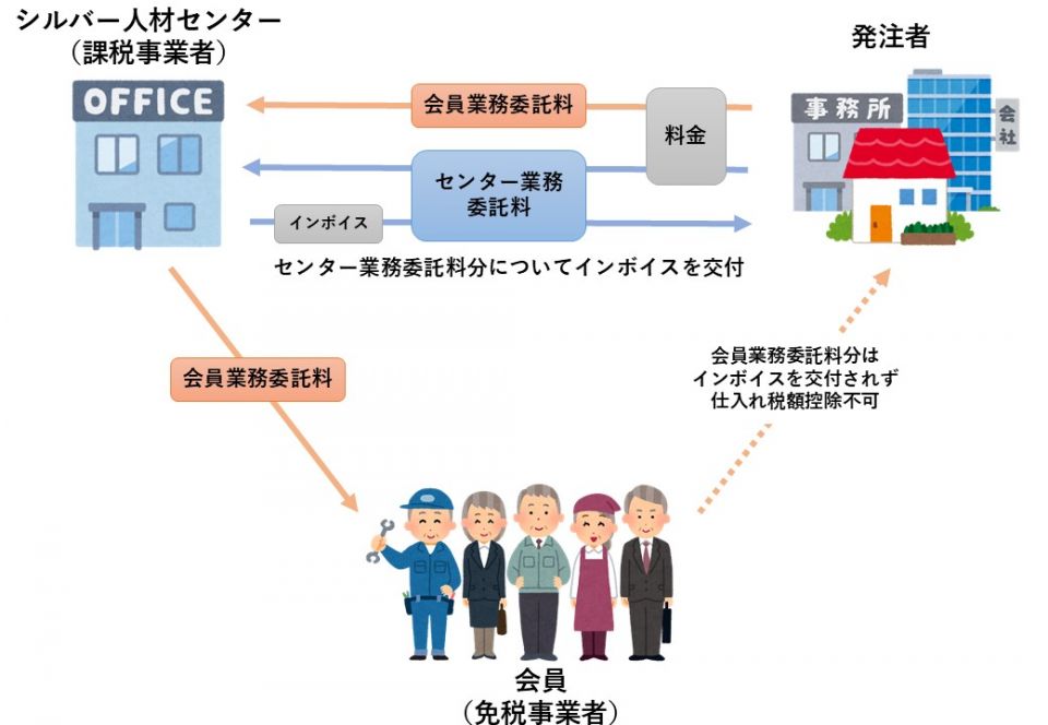 このうち、「会員業務委託料」については、新たな契約方法では、センターを経由するものの、発注者が会員に対して支払う形となります。 そのため、センターは、「センター業務委託料」の分については消費税に係る適格請求書(インボイス)を交付しますが、 「会員業務委託料」の分については交付することができません。