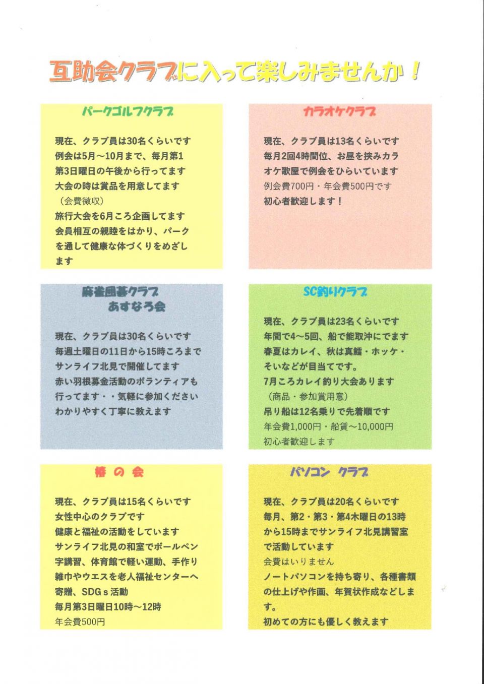 互助会クラブに入って楽しみませんか!