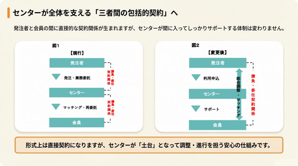 当センターの、新しい「包括的契約」への移行スケジュール