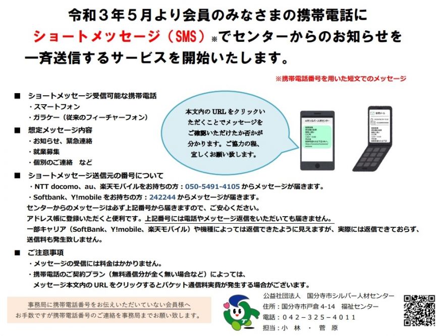 2021.5.17 : 携帯ショートメッセージ送信サービス開始のお知らせ