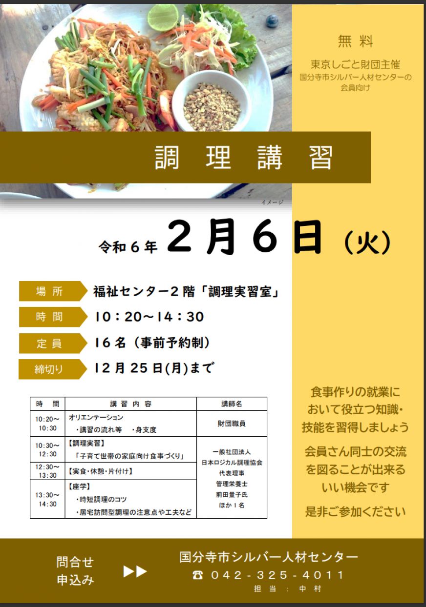 平日(午前8:30~午後5:15)シルバー人材センター事務局 042-325-4011