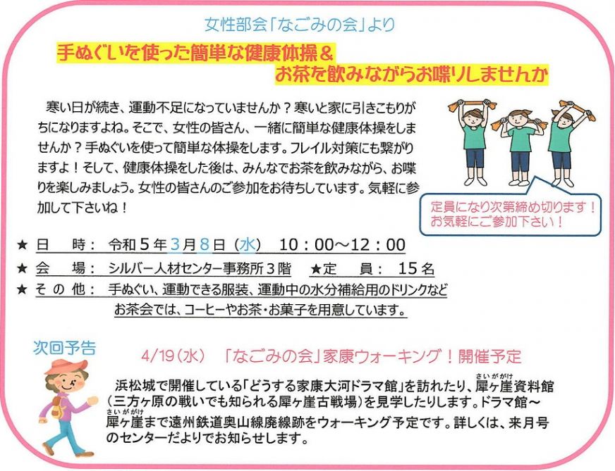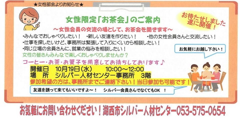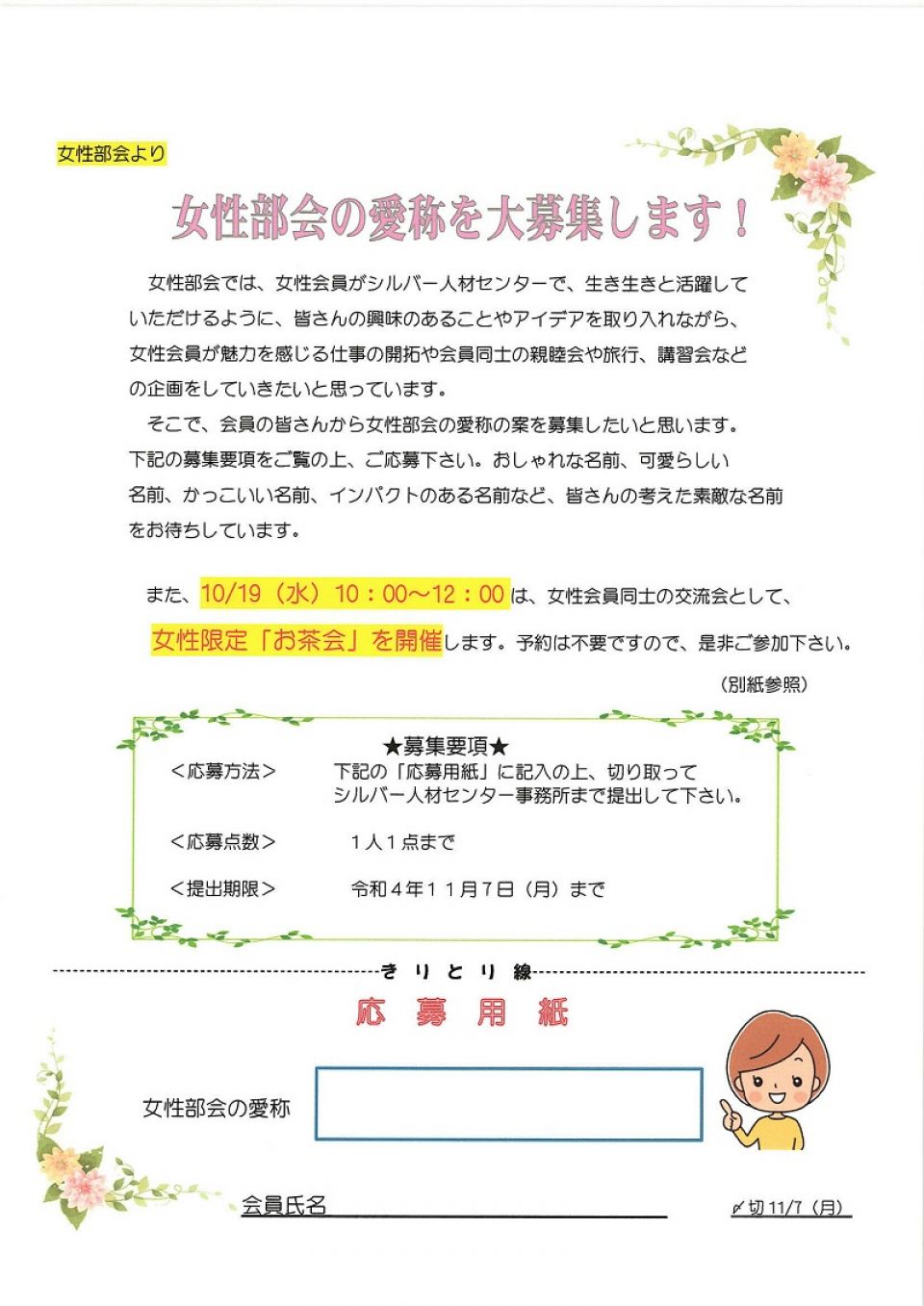 女性の皆さん、シルバー人材センターに入会して、一緒に楽しく活動しませんか♪