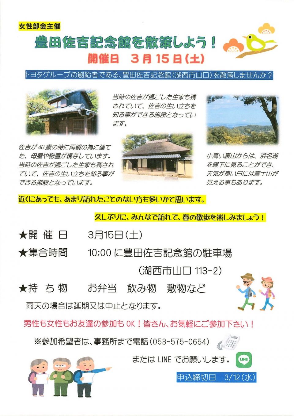 湖西市内にある豊田佐吉記念館を散策してきました。久しぶりに訪れた方も多く見られました。春の気持ちの良い散歩をみんなで楽しめました(^^♪