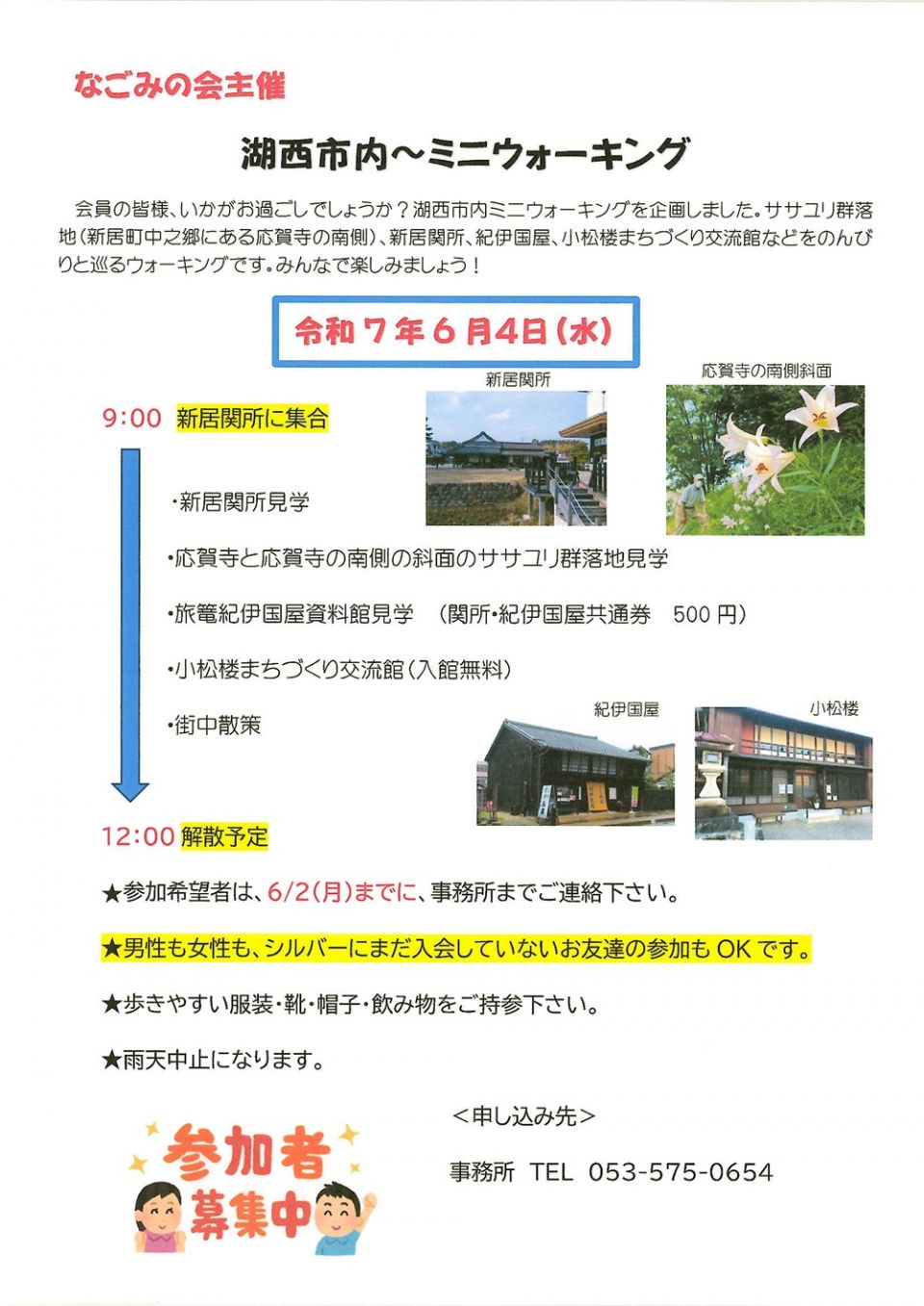 湖西市内(新居地区)ミニウォーキング 開催のお知らせ