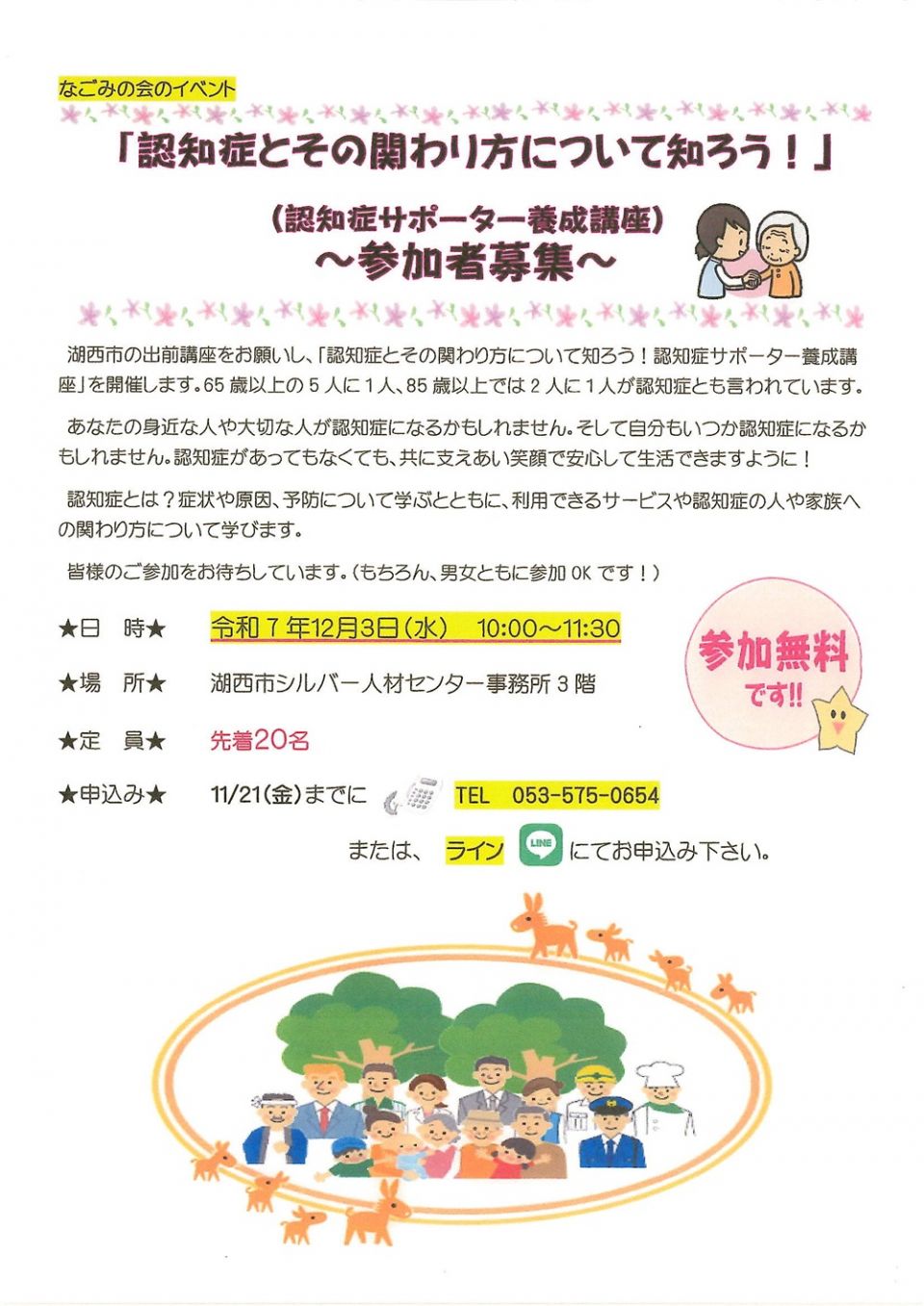 出前講座「認知症とその関わり方について知ろう!」 開催します!