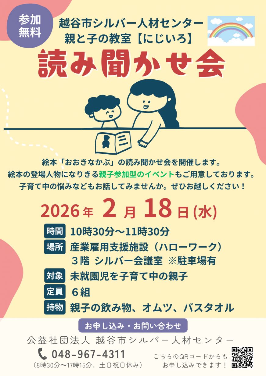 親と子の教室 【にじいろ】~読み聞かせ会~ 開催のお知らせ!