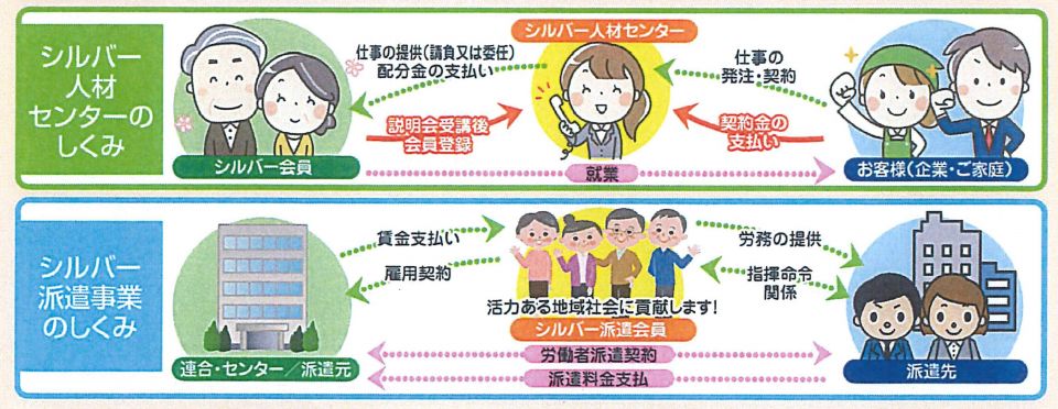 シルバー人材センターで働く高齢者の就業日数や、就業形態別の業務の実施方法などをご紹介しています。