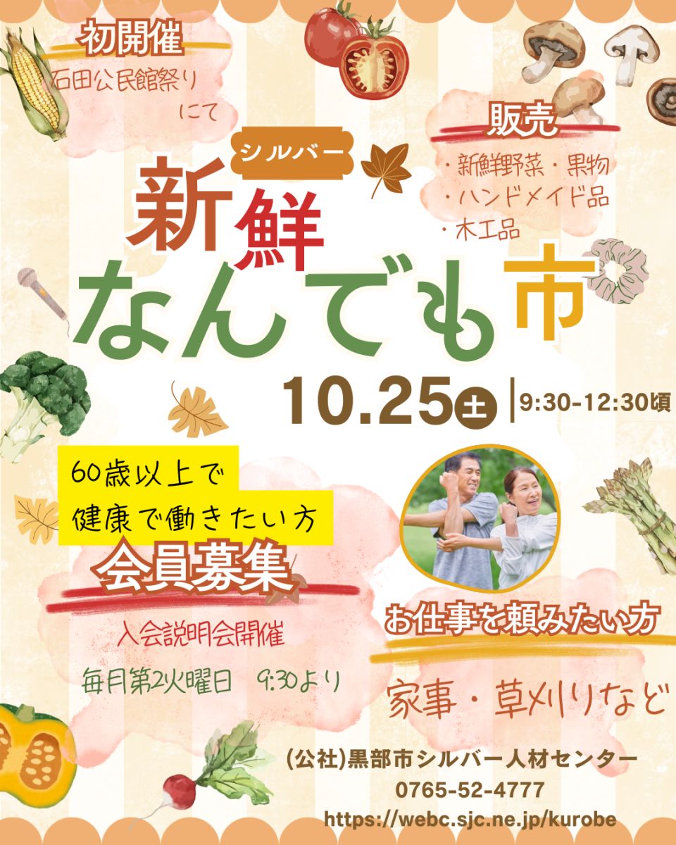 10/25(土)石田公民館祭りにてシルバー新鮮なんでも市のプレイベントを開催します!