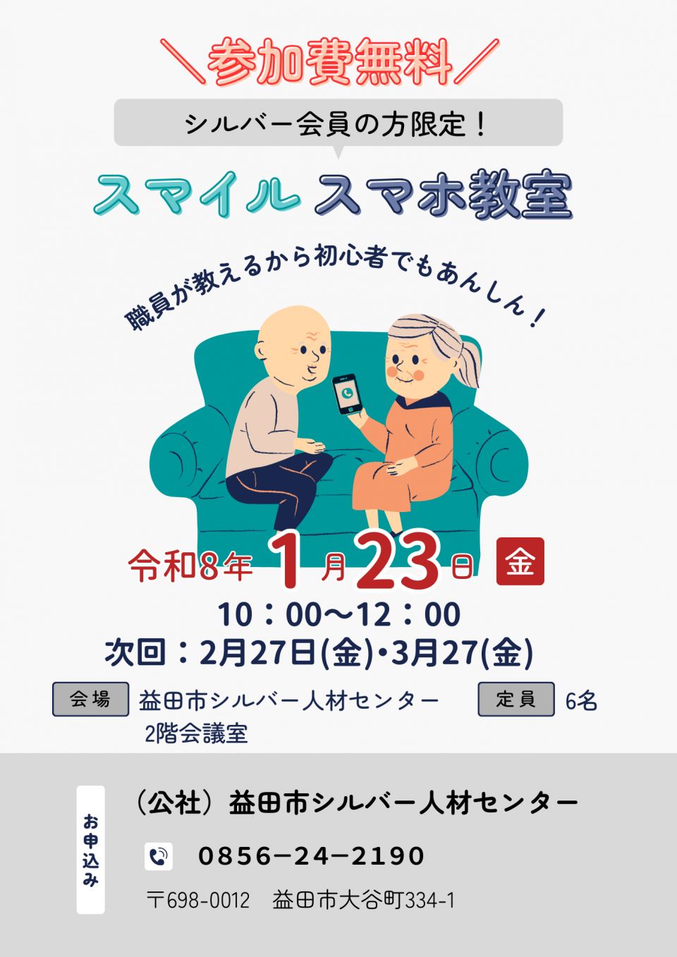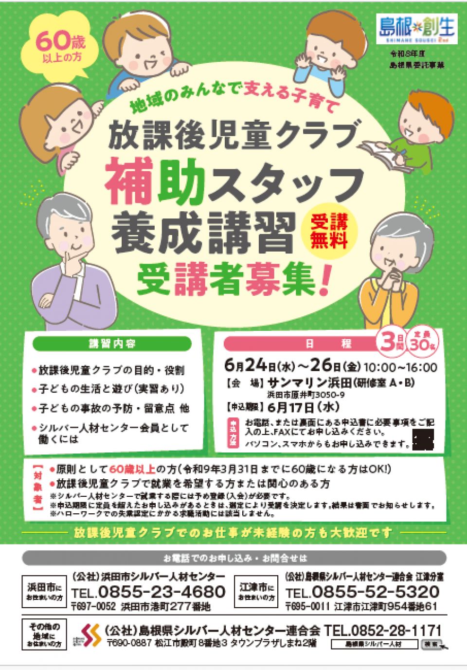 参加希望の方はセンターまでご連絡ください 0856-24-2190(事務局)